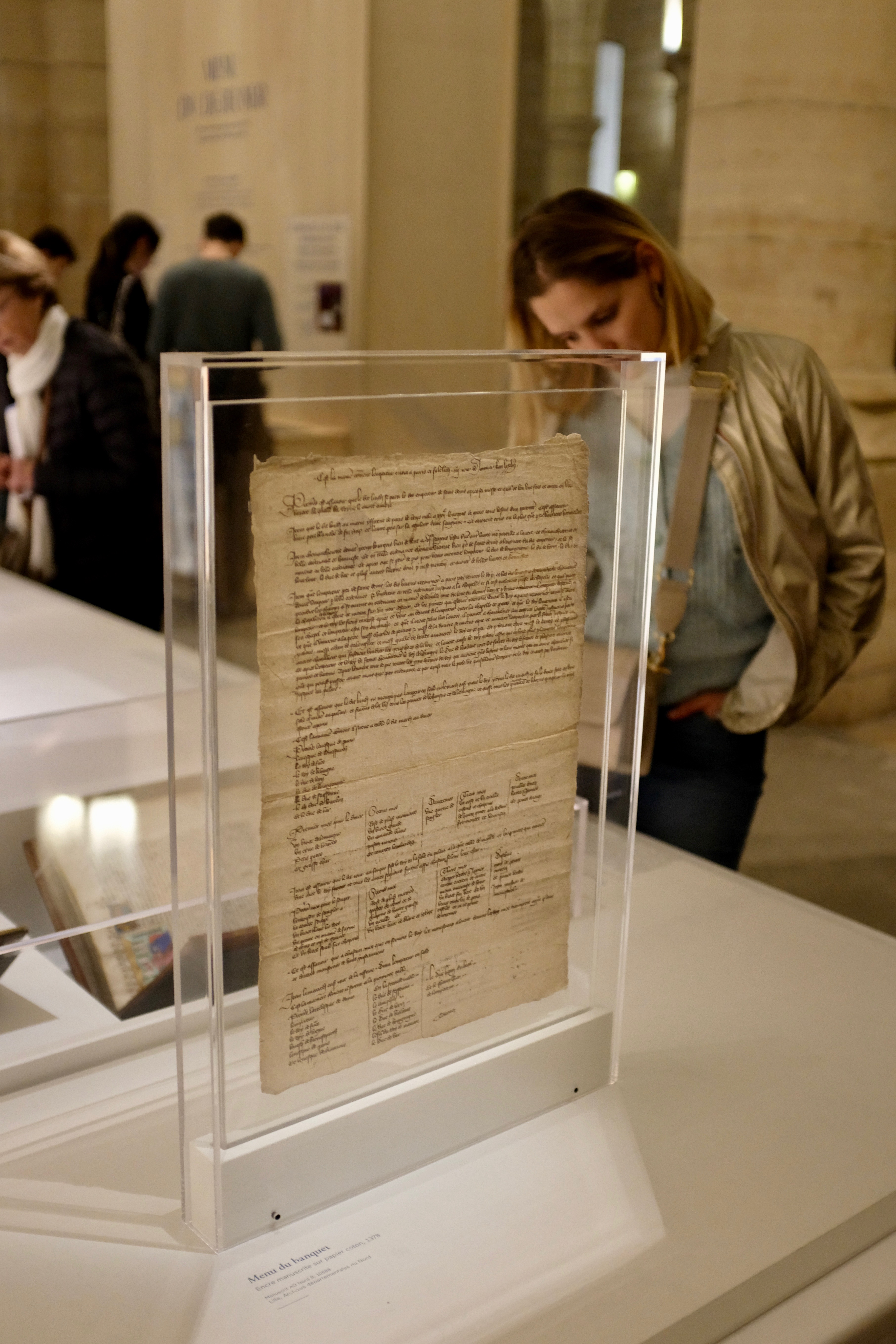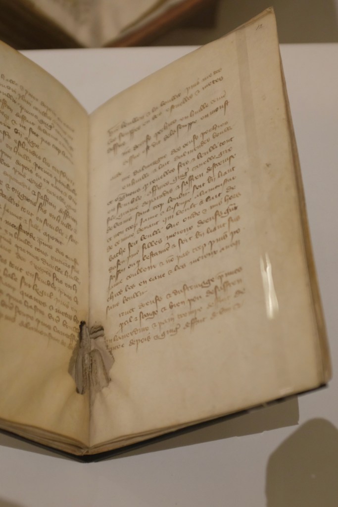 The exposition offers a chance to better know France’s first celebrity chef – Guillaume Tirel, known as Taillevent, author of the first French cookbook, Le Viandier, and the man who prepared the banquet for Charles V. The King ordered four courses of forty dishes for the meal, then decided the elderly Emperor might not be up for all that, so he settled for three courses of thirty dishes (oyster stew, capons in a fish salmis, reversed eels, roasted sea bream, salted goose, stuffed figs covered in gold leaf, Boar’s tail, stuffed gilded rabbits, roast mullet with safflower sauce, white almond blancmange…).